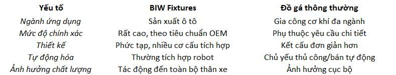 4. So sánh BIW Fixtures và đồ gá cơ khí thông thường